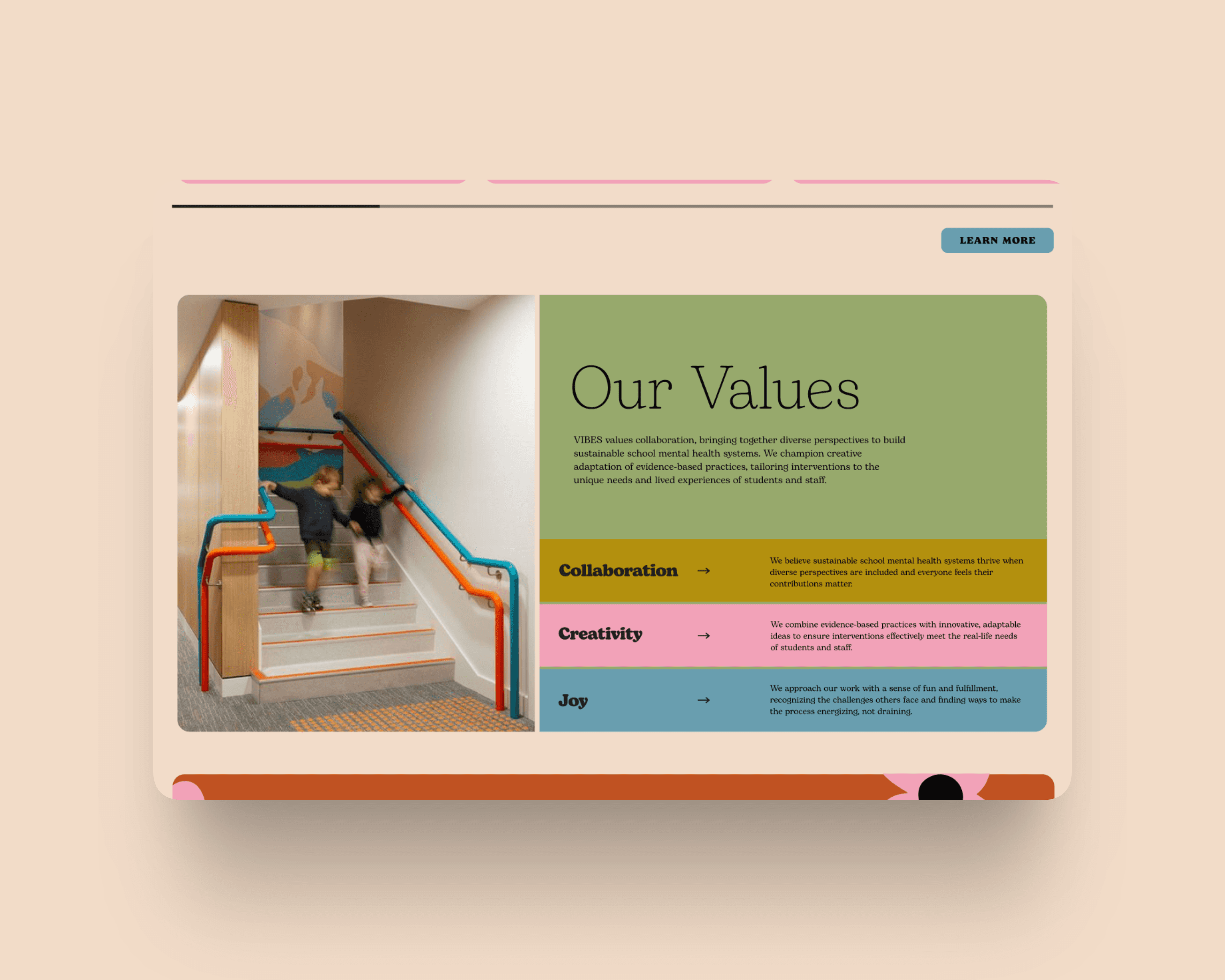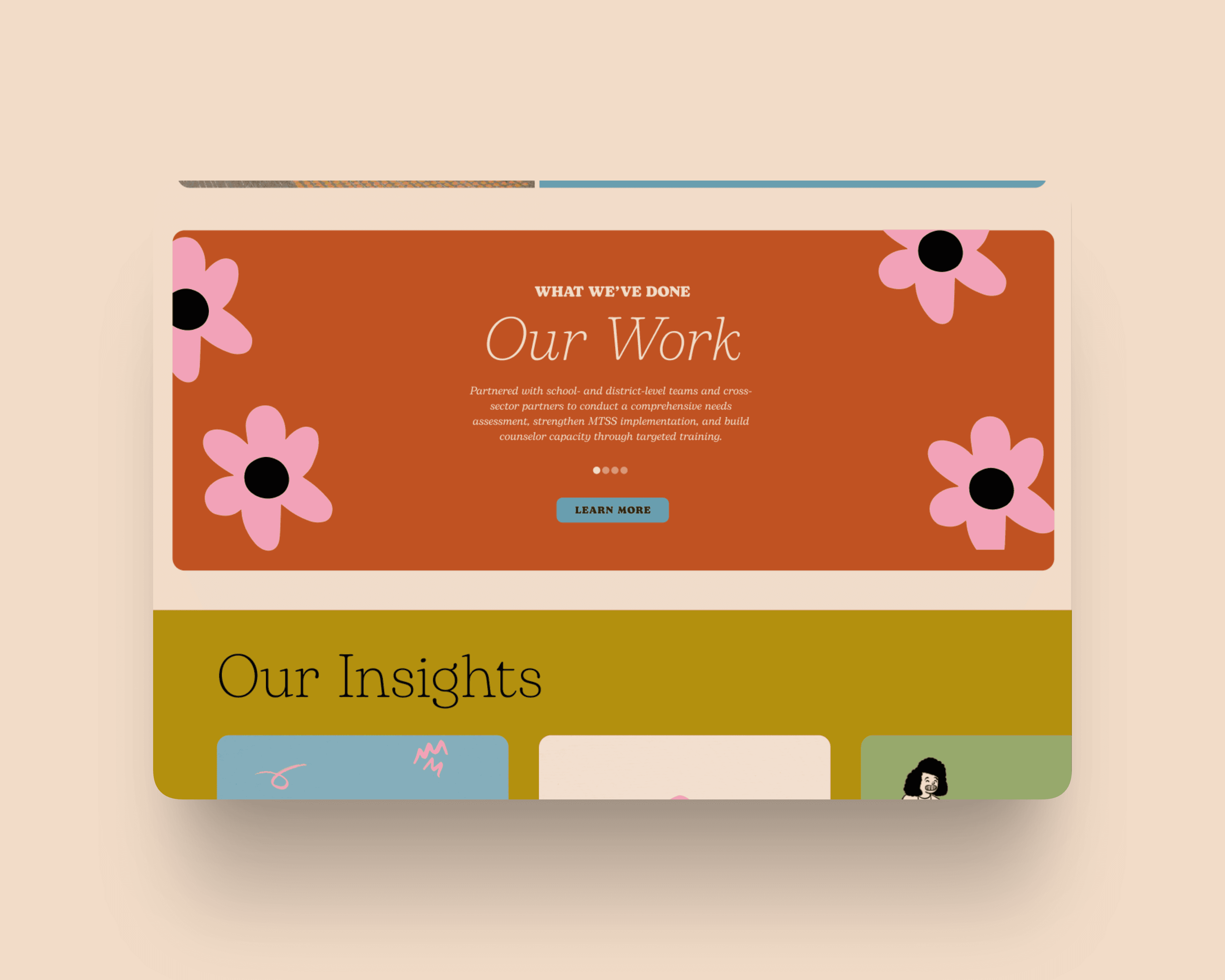 A mental health education platform for institutions. In collaboration with a developer and branding team, I designed a responsive, user-centric website that transforms high-volume content into a streamlined digital experience. By implementing a strategic layout and intuitive information architecture, I reduced cognitive load and simplified navigation to ensure users find key information quickly. The design features horizontal scrolling in exploratory sections to encourage discovery without cluttering the interface, while interactive elements and logical content grouping create a guided, engaging journey across all devices.
